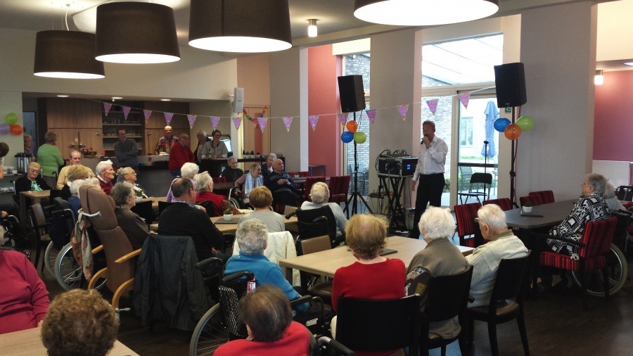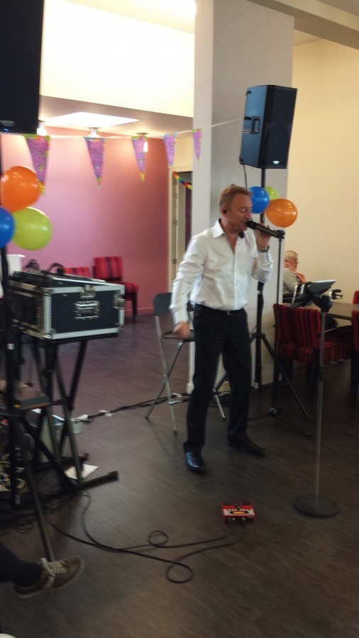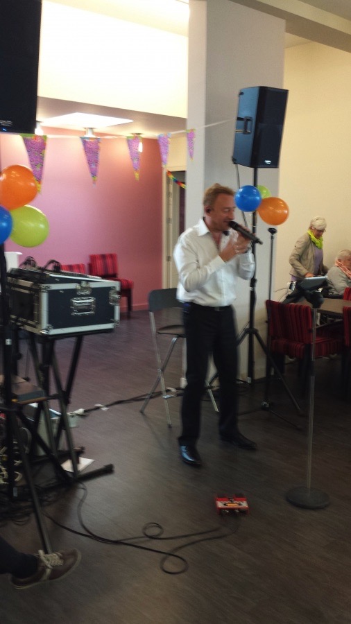 De bewoners deden dat in t Lindehof met een reuze verjaardagstaart (inclusief vuurwerk), een verrassingsoptreden van Johan Wijckmans, onze gewaardeerde chef-kok en talentvolle schlagerzanger. Johan deed in 2012 nog mee aan de blind auditions van The Voice !