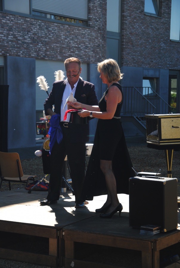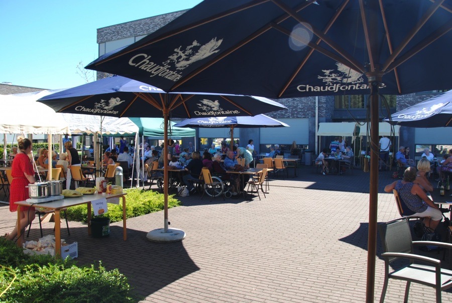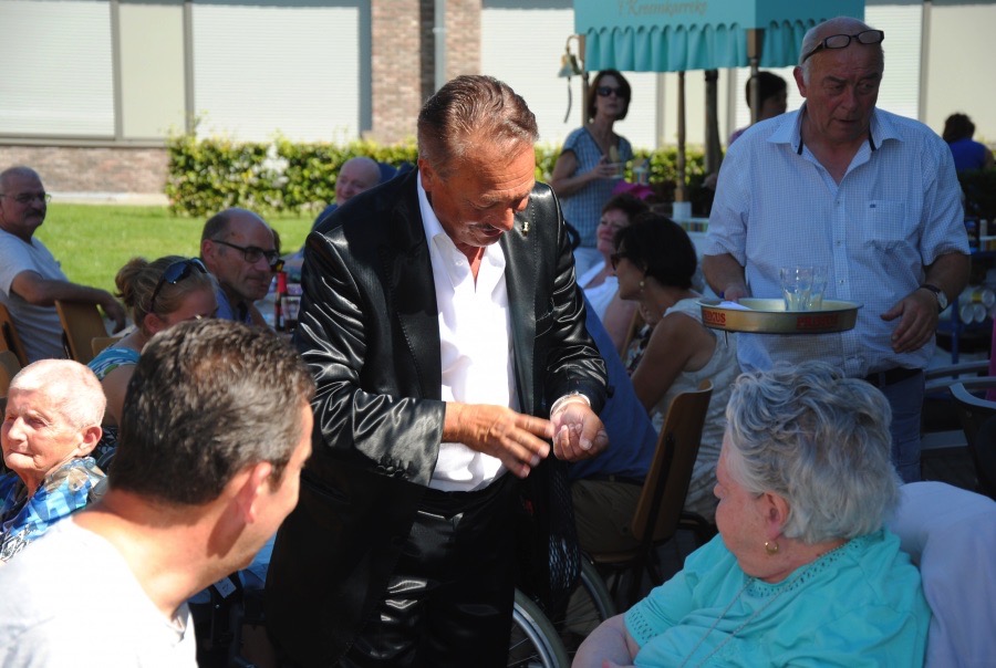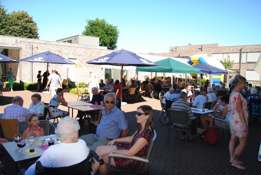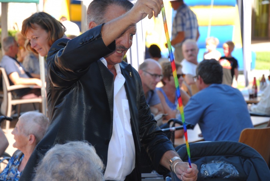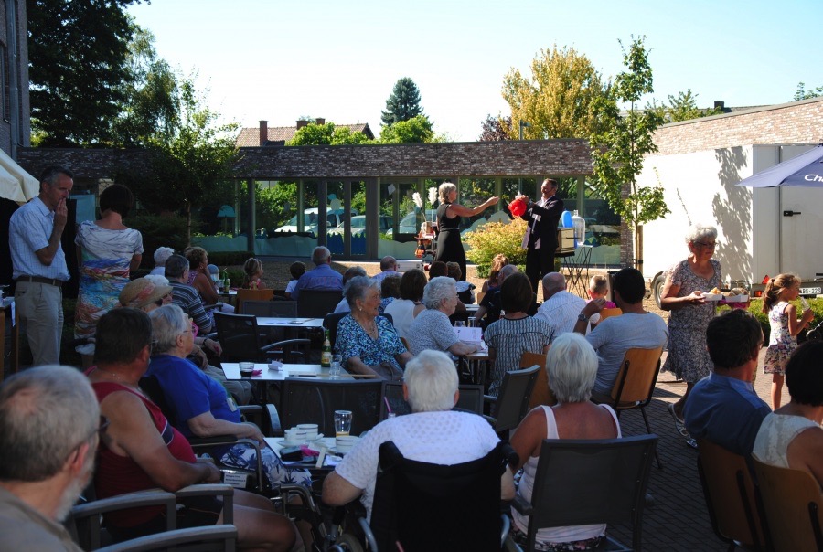 Familiedag in woonzorgcentrum Zusterhof. Dat betekent: de zon bestellen (check: 32°), een springkasteel zoeken (check), huisgemaakte smoutebollen, hotdogs en lekkere ijsjes (check). Neem daarbij nog een kindergrimestand én voor groot en klein een prachtige goochelshow: meer moet dat niet zijn !